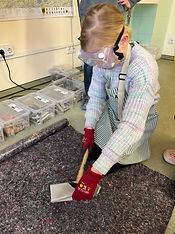 Es wurden Natursteine gesammelt, nach Farben sortiert und ein ein Sandbett gelegt. Das erste Gemeinschaftswerk.​